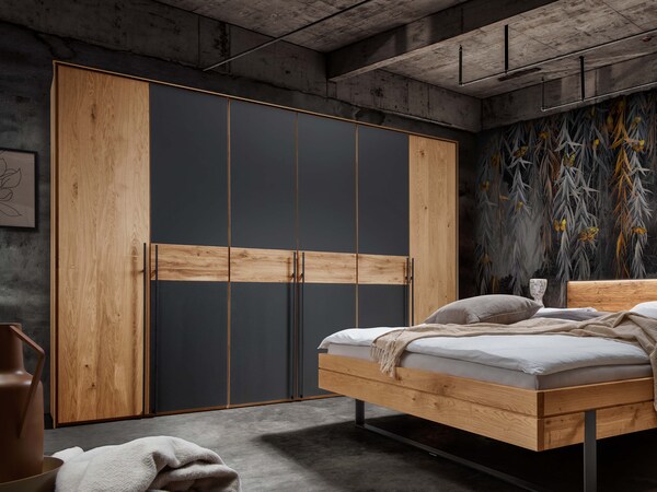 Ein maßgeschneiderter Kleiderschrank passt sich perfekt den Gegebenheiten Ihres Schlafzimmers an und kann den vorhandenen Platz optimal ausnutzen. Viele unserer Kleiderschrank-Modelle können Sie aus Einzelmodulen genau für Ihre individuellen Bedürfnisse planen. Verschiedene Rasterbreiten lassen sich untereinander kombinieren und machen Ihren flexiblen Wunsch-Kleiderschrank aus Holz möglich.
