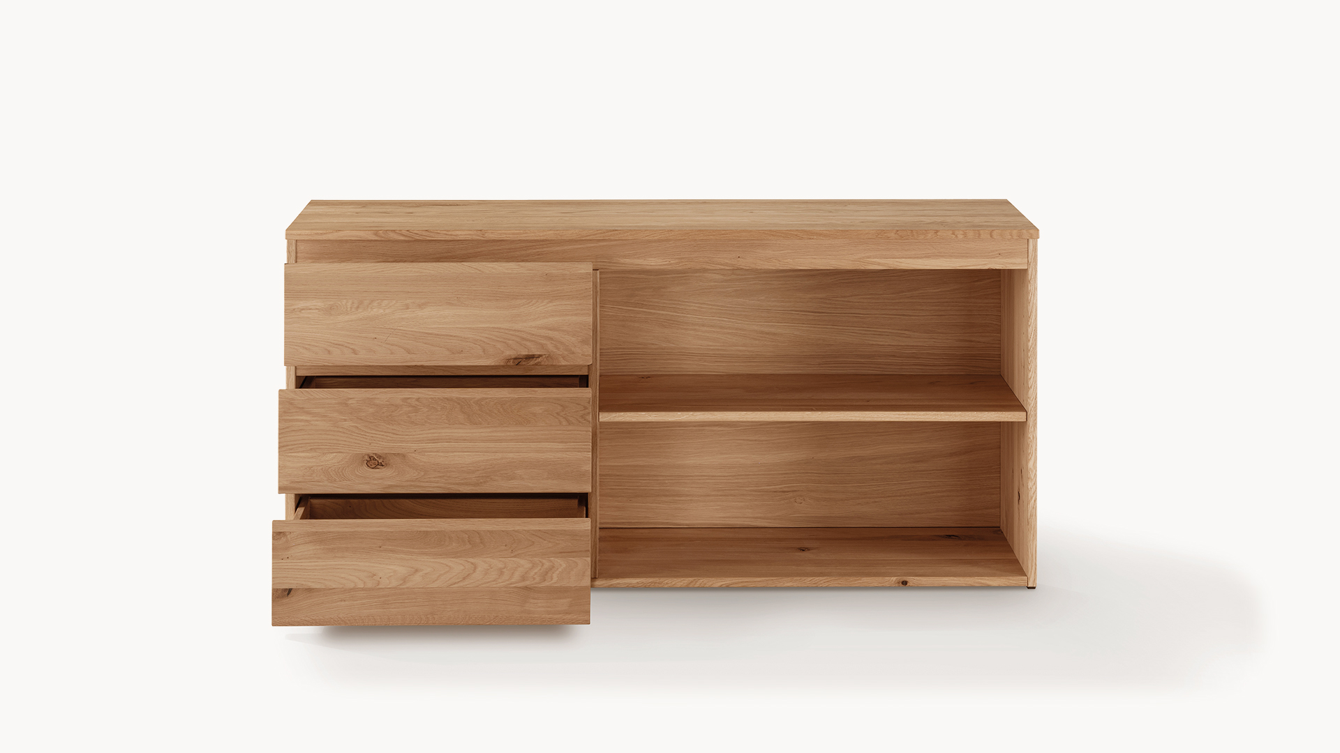 • Sideboard mit 3 Schubladen und Regalelement mit 1 höhenverstellbaren Einlegeboden