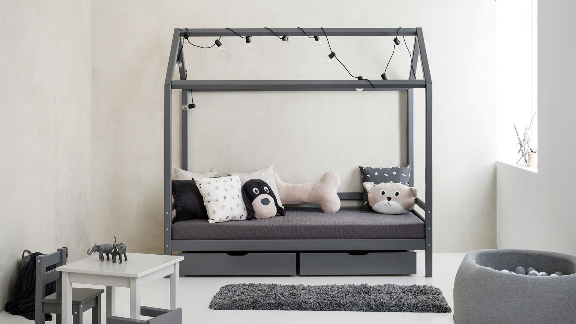 Dank des durchdachten Designs mit einem Sicherheitsgeländer an drei Seiten sorgt für ein sicheres Schlafgefühl und schafft Vertrauen - Nacht für Nacht. Unter dem Bett ist zusätzlicher Platz für praktischen Stauraum. Die optionalen Schubkästen auf Rollen nutzen diesen Raum besonders clever, darin finden zum Beispiel Bettwäsche oder Spielzeug ein neues Zuhause.