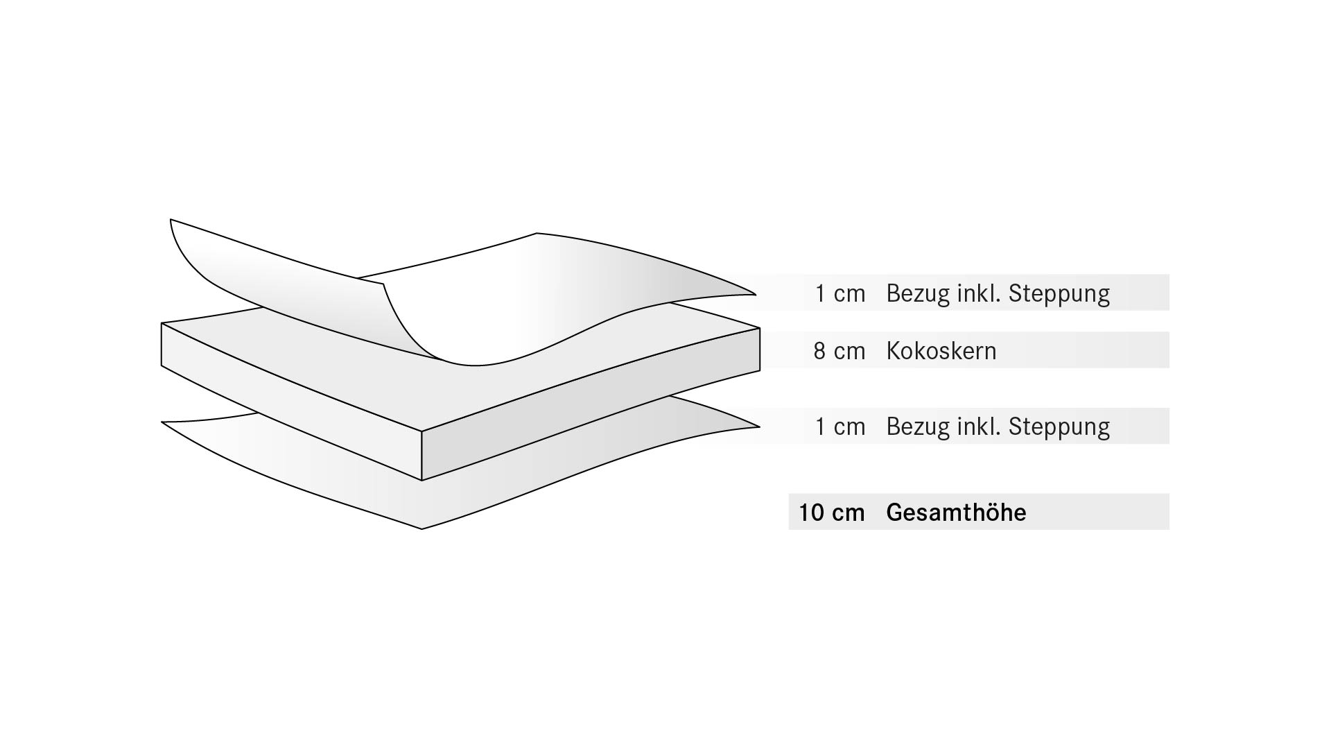 Der 8 cm hohe Matratzenkern besteht aus latexierten Kokosfasern. Die Latexierung verleiht dem Kokos zusätzliche Elastizität.