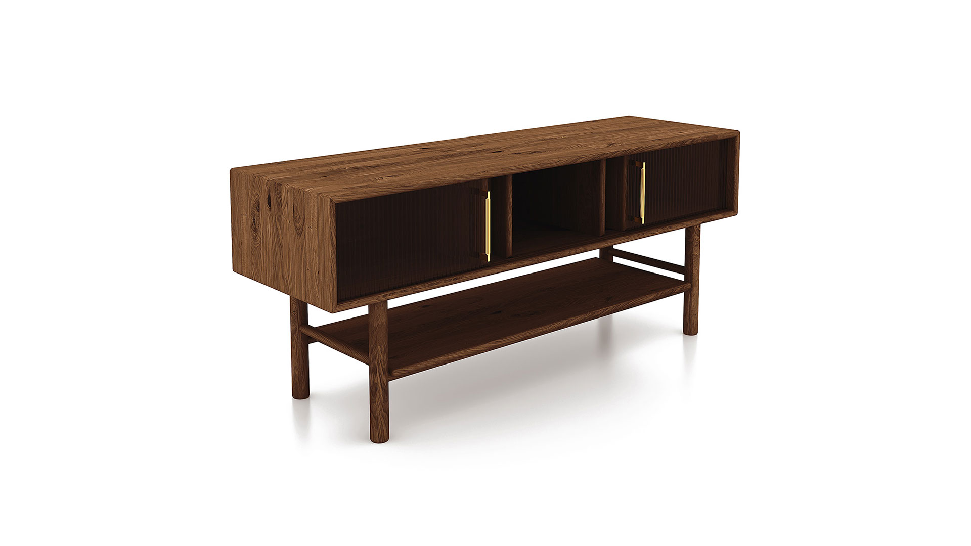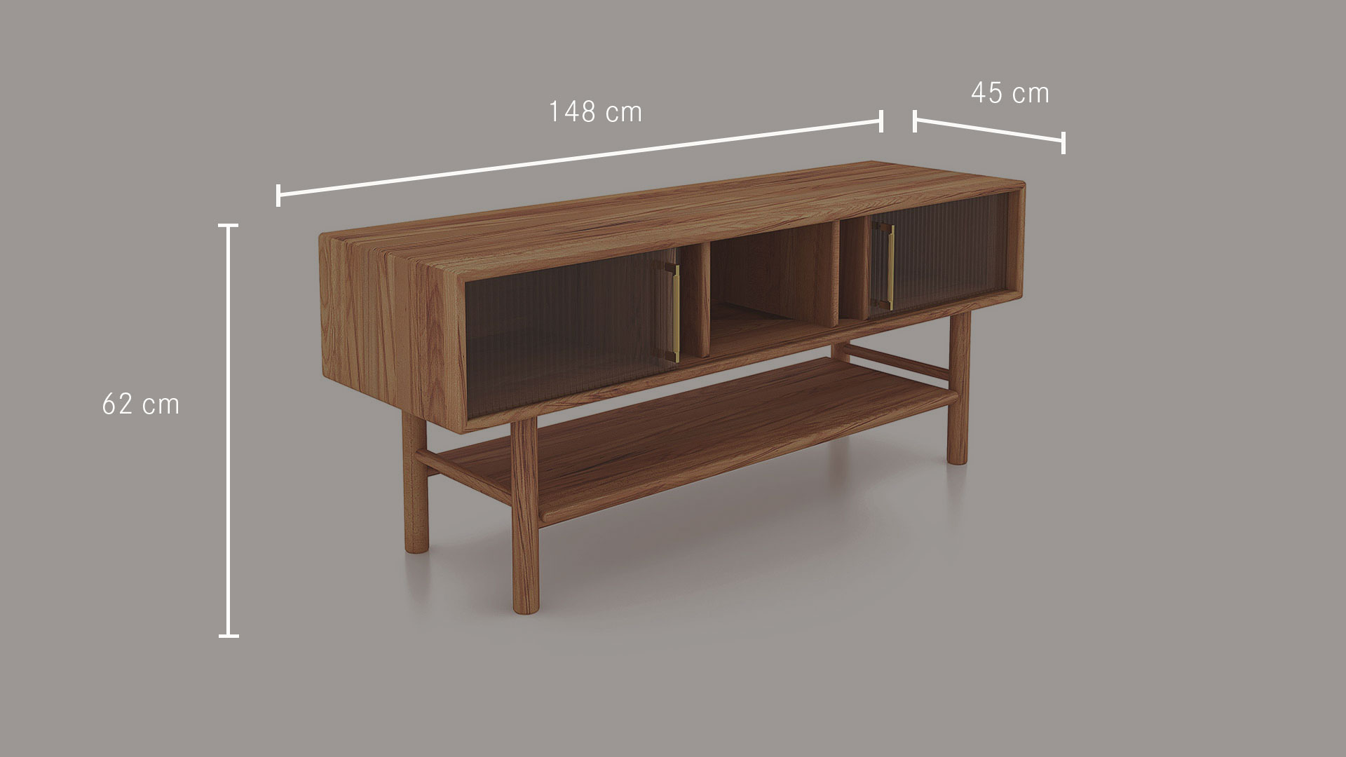 Praktisch durchdacht zeigt sich Serea auch im Alltag: mit offenen Fächern für Technik, Schubladen für Ordnung und – in Variante 03 – Schiebetüren aus geriffeltem Glas, die den Blick dezent lenken und gleichzeitig das Besondere betonen. Hinter den Glastüren sorgt außerdem eine integrierte LED-Beleuchtung für stimmungsvolle Akzente und setzt Ihre Lieblingsstücke elegant in Szene. So wird Ihr Wohnbereich zum Ort, an dem Funktion und Design im perfekten Einklang stehen.