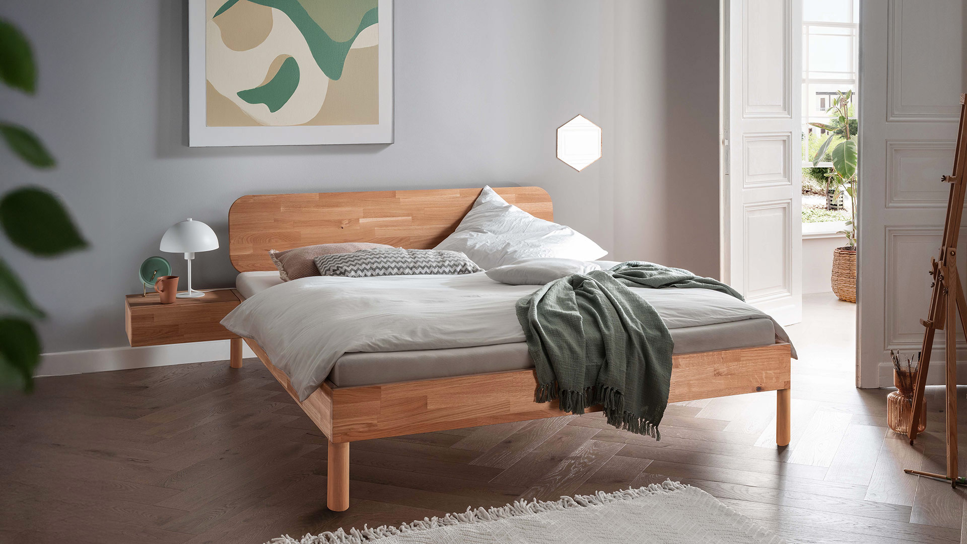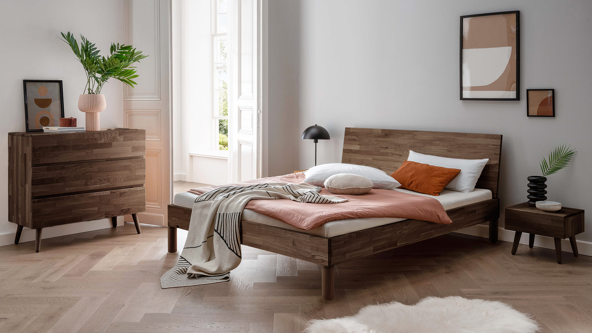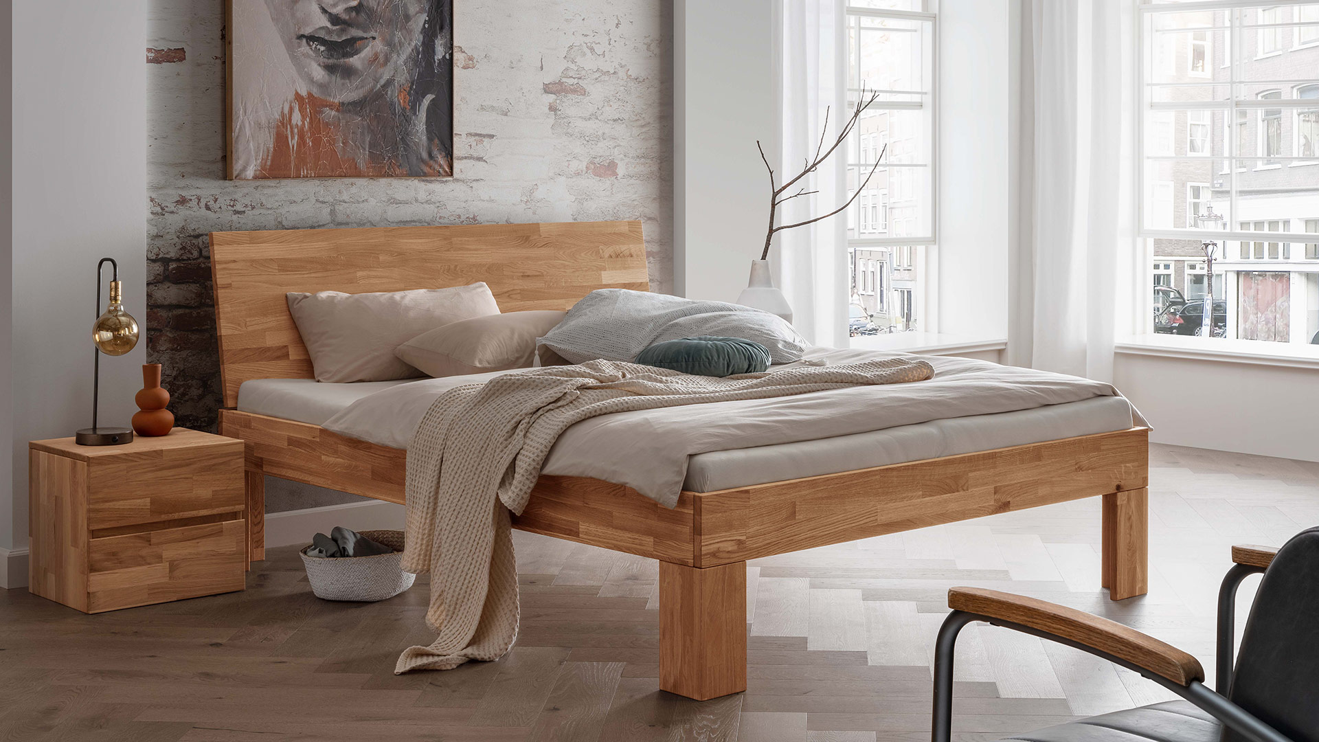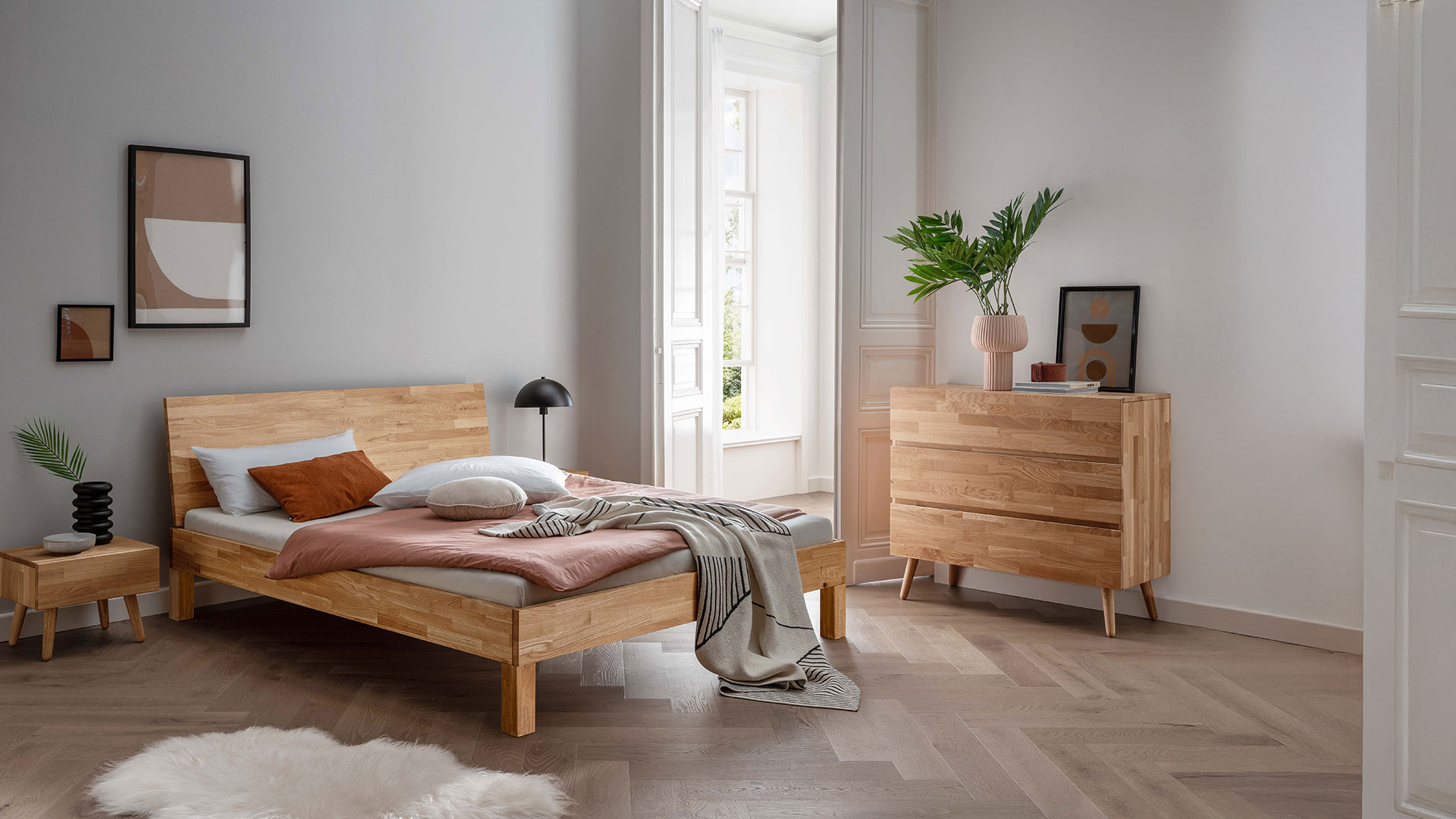 Massivholzbett "Lunara" bringt eine warme, natürliche Atmosphäre in Ihr Schlafzimmer und bietet Ihnen gleichzeitig die Möglichkeit, es nach Ihren persönlichen Vorstellungen zu individualisieren. So schaffen Sie ein Möbelstück, das genau zu Ihrem Stil passt. Ob Sie eine ruhige, natürliche Optik bevorzugen oder markante Akzente setzen möchten: Dieses Bett wird zu einem Ort der Entspannung, an dem Sie sich jeden Abend gerne zurückziehen.