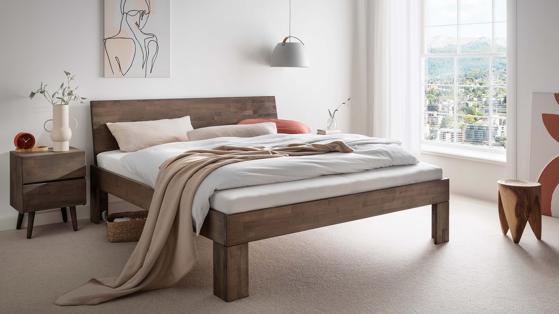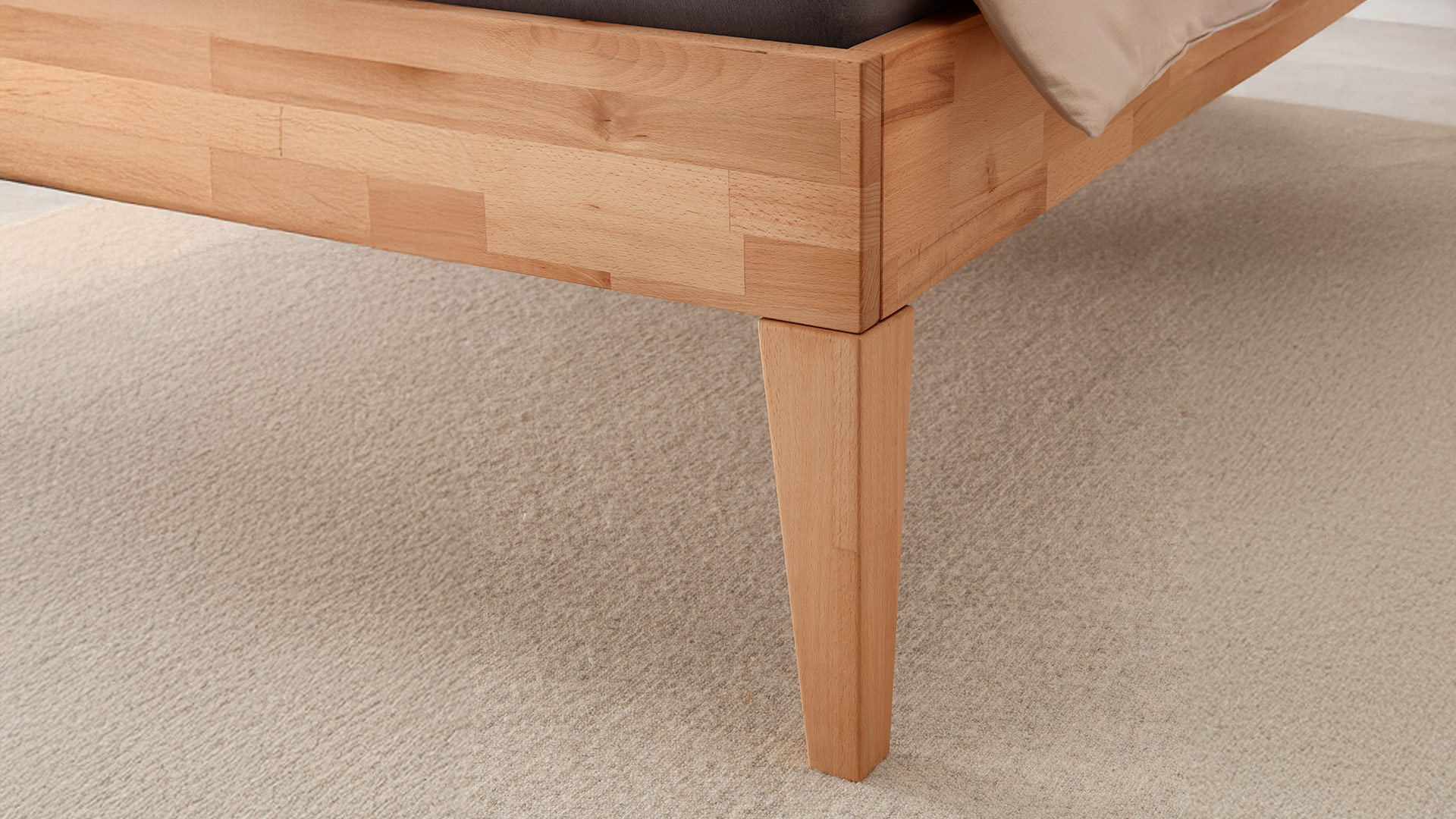 Wählen Sie aus zwei edlen Holzkopfteilen und vier verschiedene Fußvarianten Ihren Favoriten. Bei den Holzarten haben Sie ebenfalls freie Wahl: die weiß-lasierte Buche wirkt leicht, modern und besonders freundlich. In dunkler Buche Mokka setzt das Bett warme, ausdrucksstarke Farbakzente. Die Kernbuche zeigt eine lebendige Maserung mit natürlichem Charakter und in Wildeiche wird eine kraftvolle, zeitlose Ausstrahlung vermittelt. Heißen Sie mit Massivholzbett "Lunara" natürliche und stilsichere Geborgenheit in Ihrem Schlafzimmer willkommen.