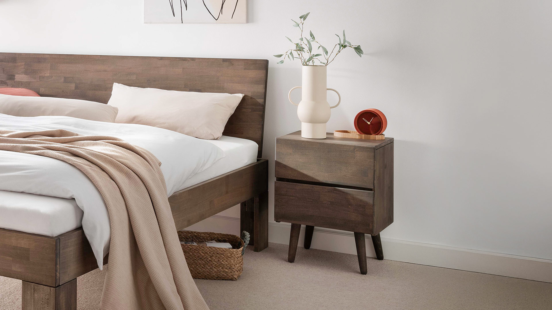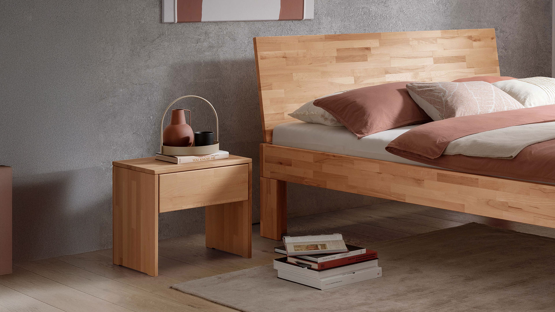 Nachttisch "Lunara" ergänzt Ihr Schlafzimmer mit einer klaren, harmonischen Form und bietet Platz für alles, was Sie nachts gerne griffbereit haben. Verfügbar in den Holzarten Kernbuche, Wildeiche, Buche Mokka und Buche Weiß fügt er sich mühelos in verschiedene Einrichtungsstile ein.