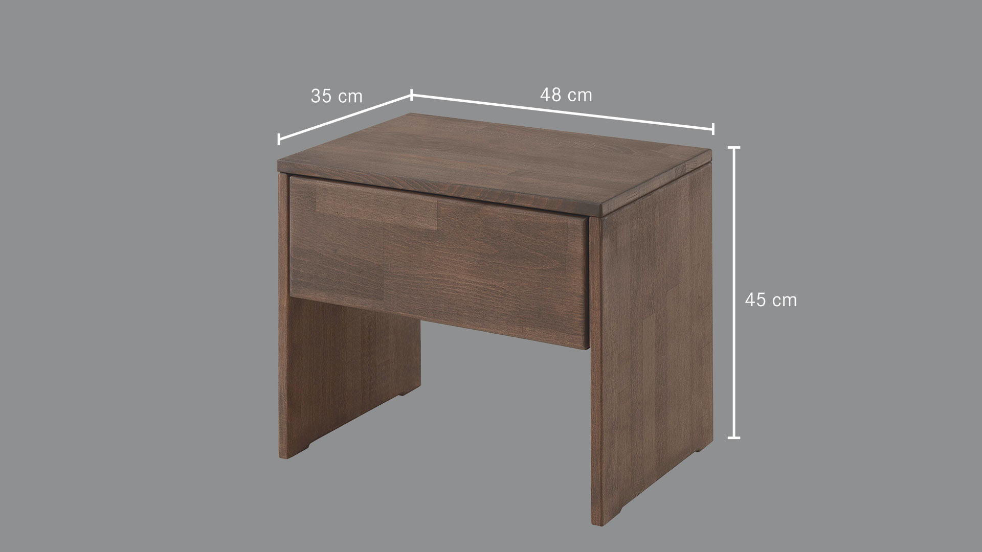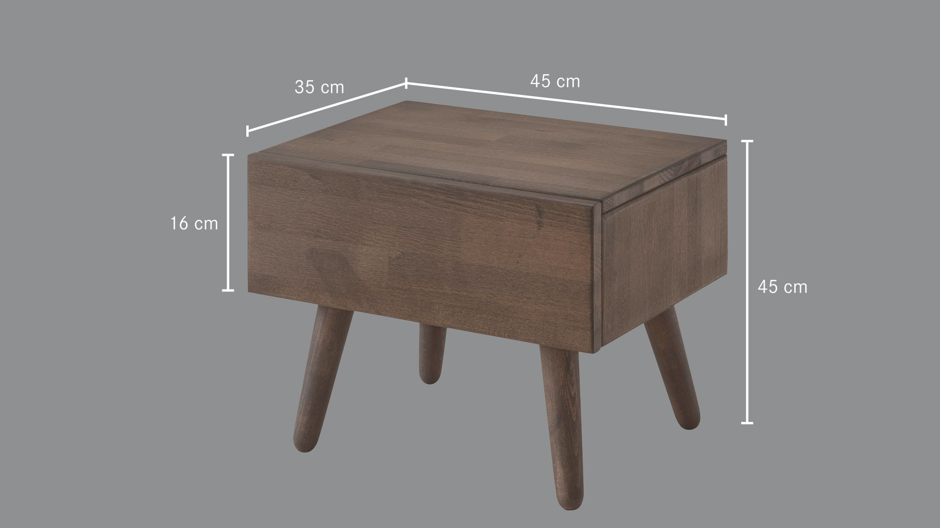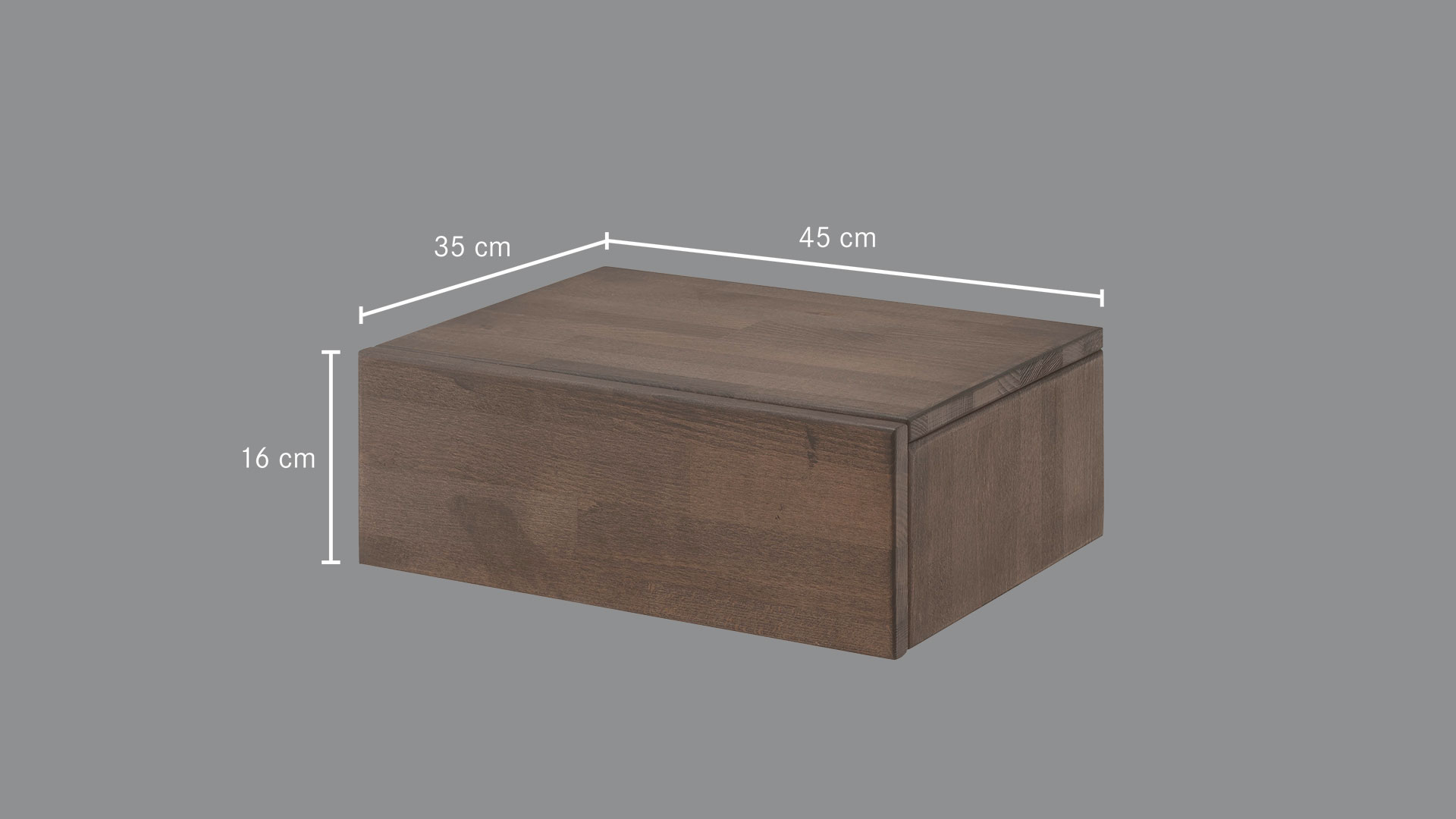 Außenmaße B45xT35 cm, Höhe mit Füßen 45 cm, Höhe ohne Füße 16 cm