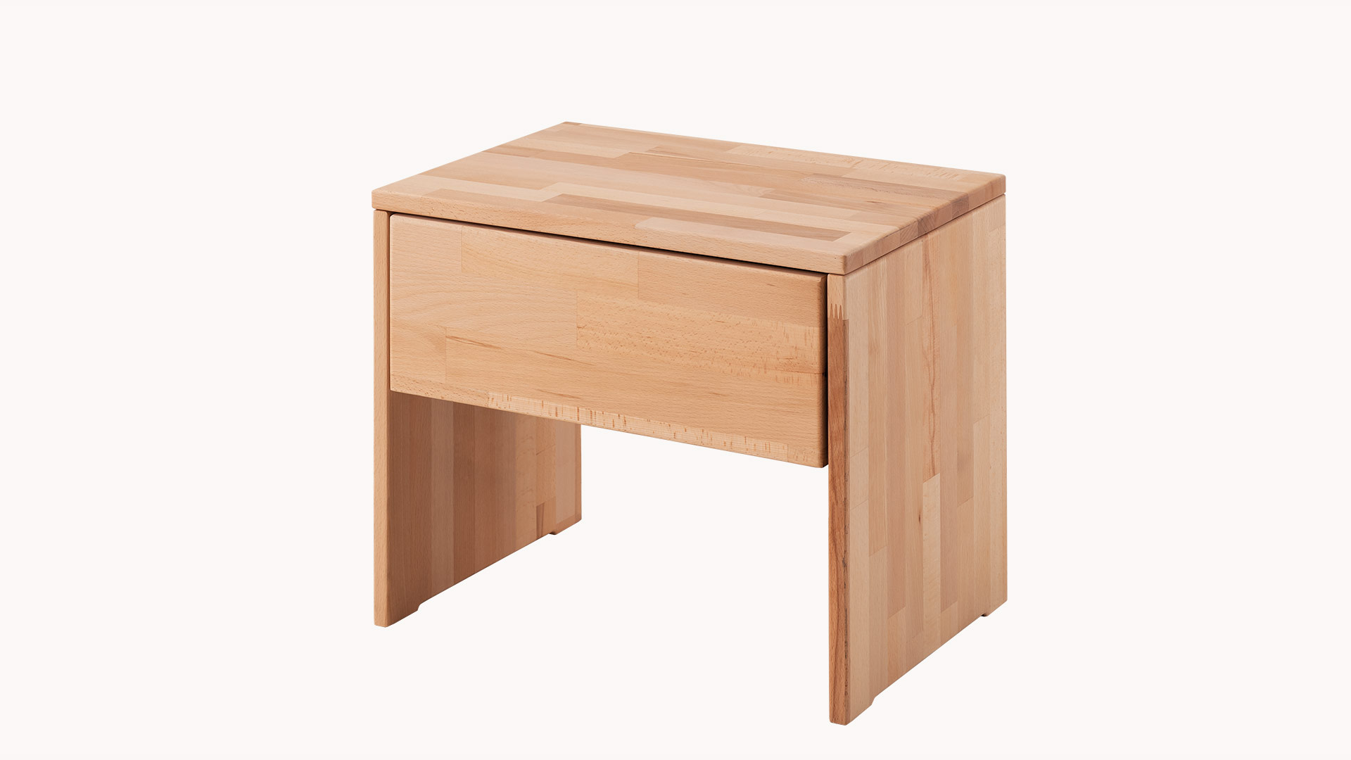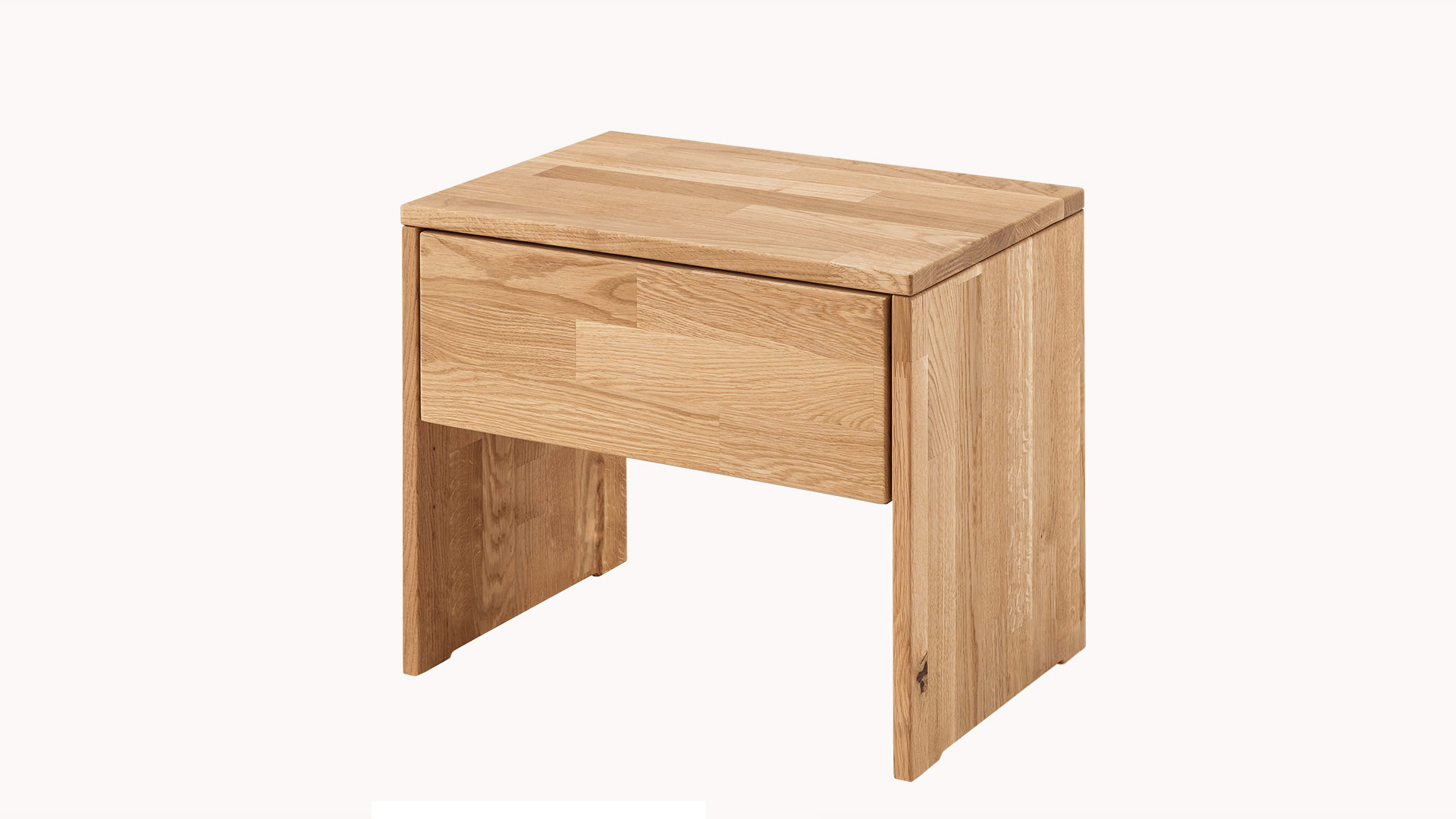 rechteckiger Nachttisch mit Schublade und breiten Standfüßen links und rechts