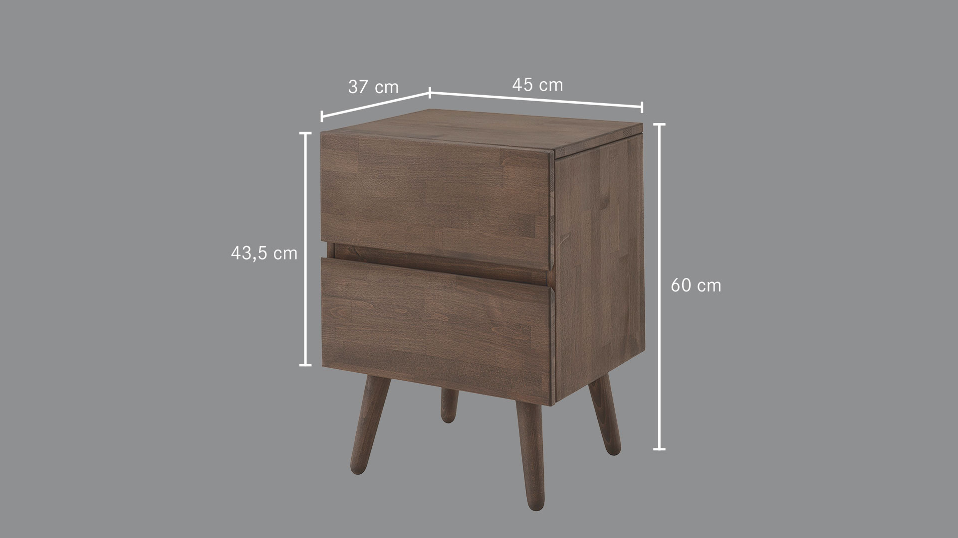 Außenmaße B45xT37 cm, Höhe mit Füßen 60 cm, Höhe ohne Füße 43,5 cm