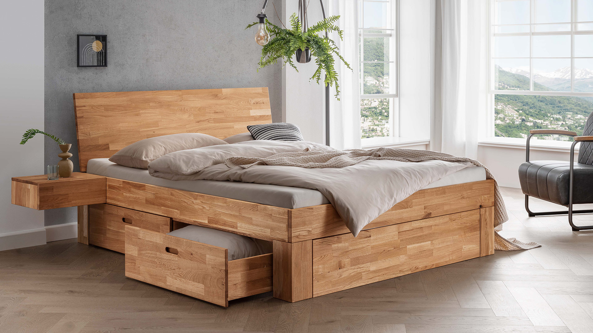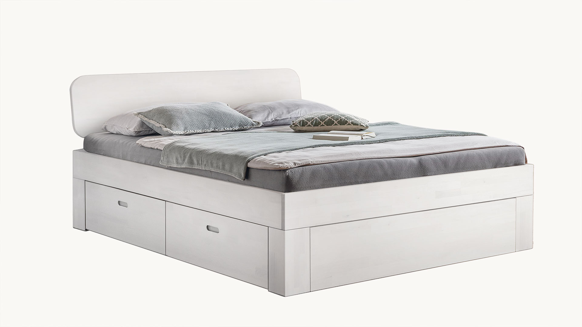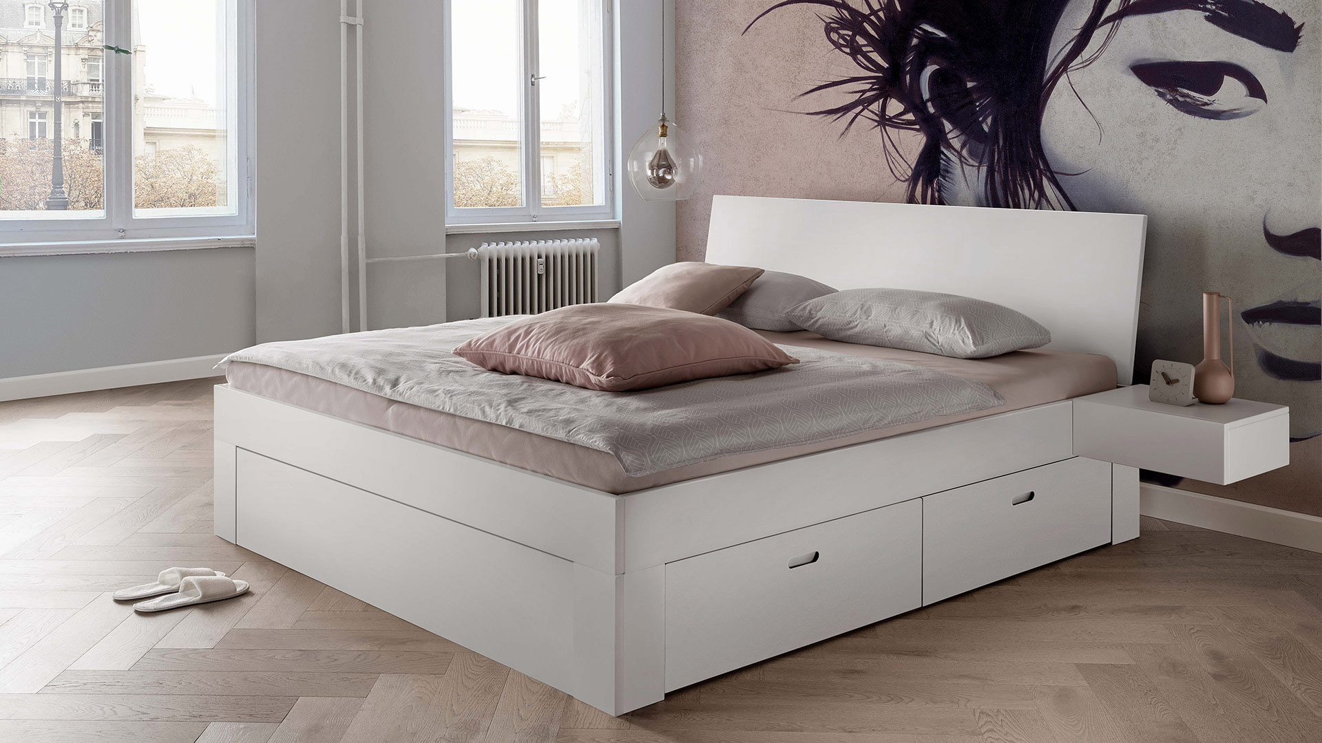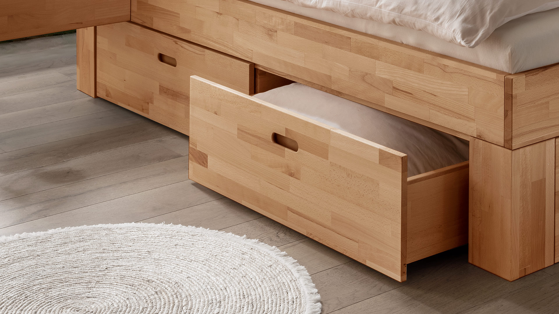 • Je 2 Schubkästen pro Bettseite mit dezenten Griffmulden