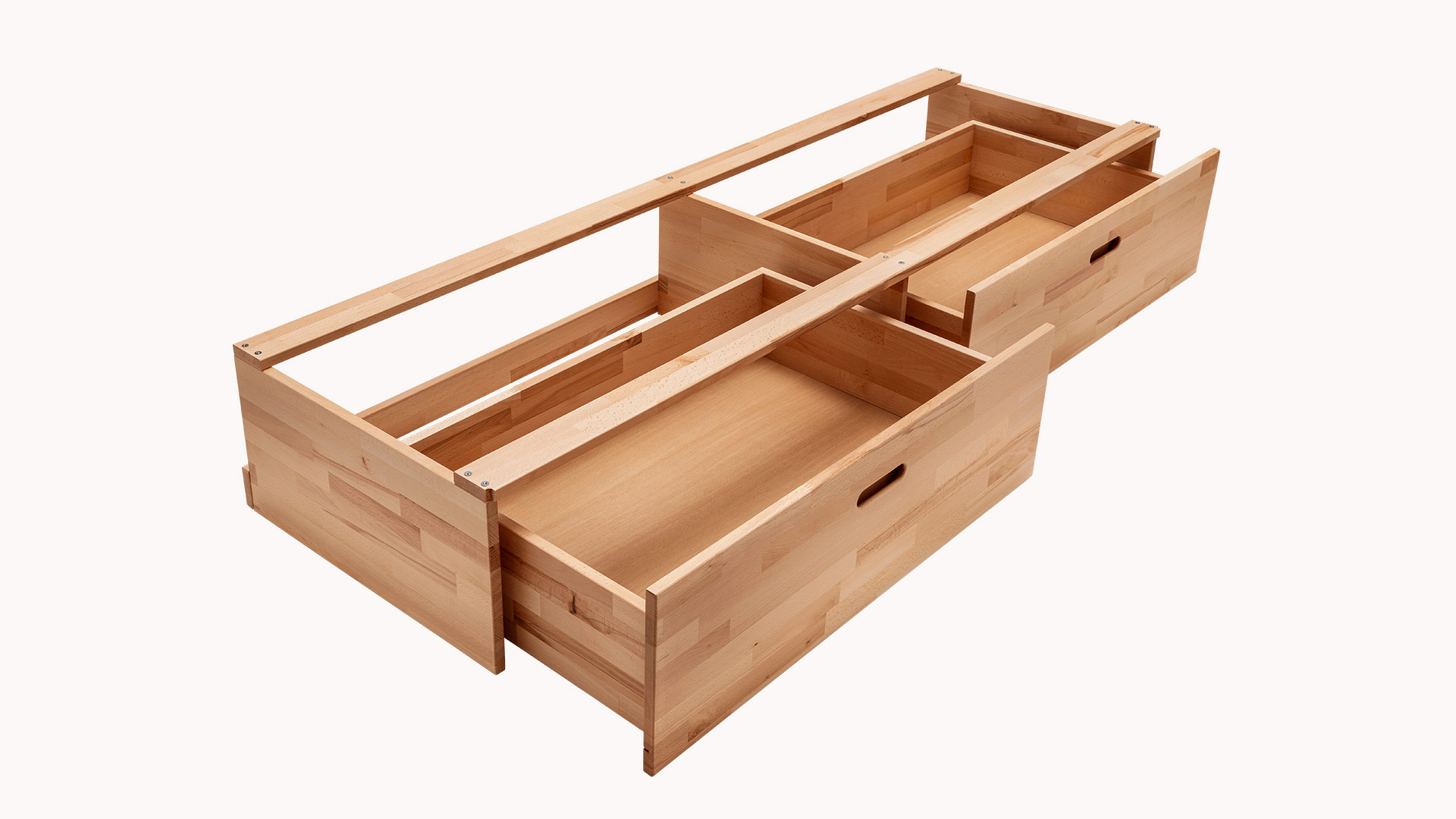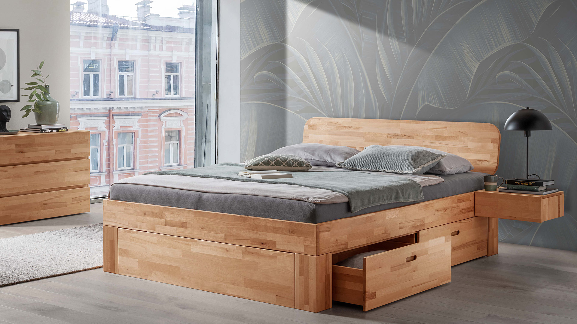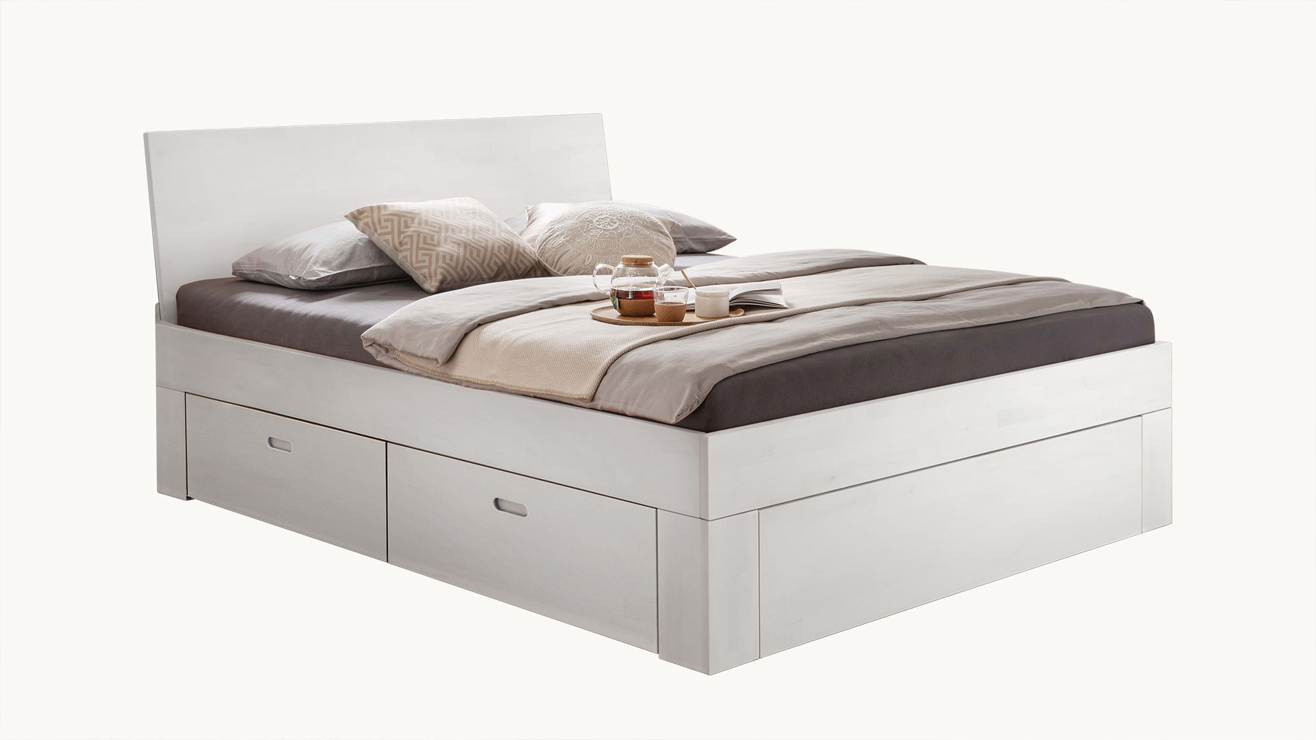 • Minimalistisches Schubkastenbett mit viel Stauraum