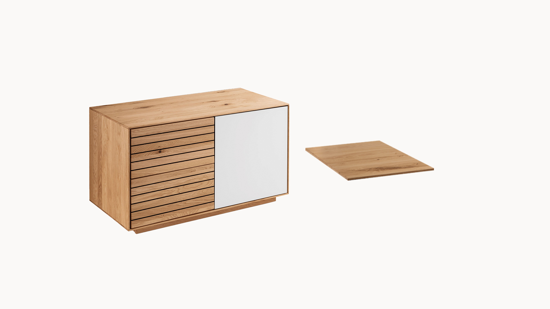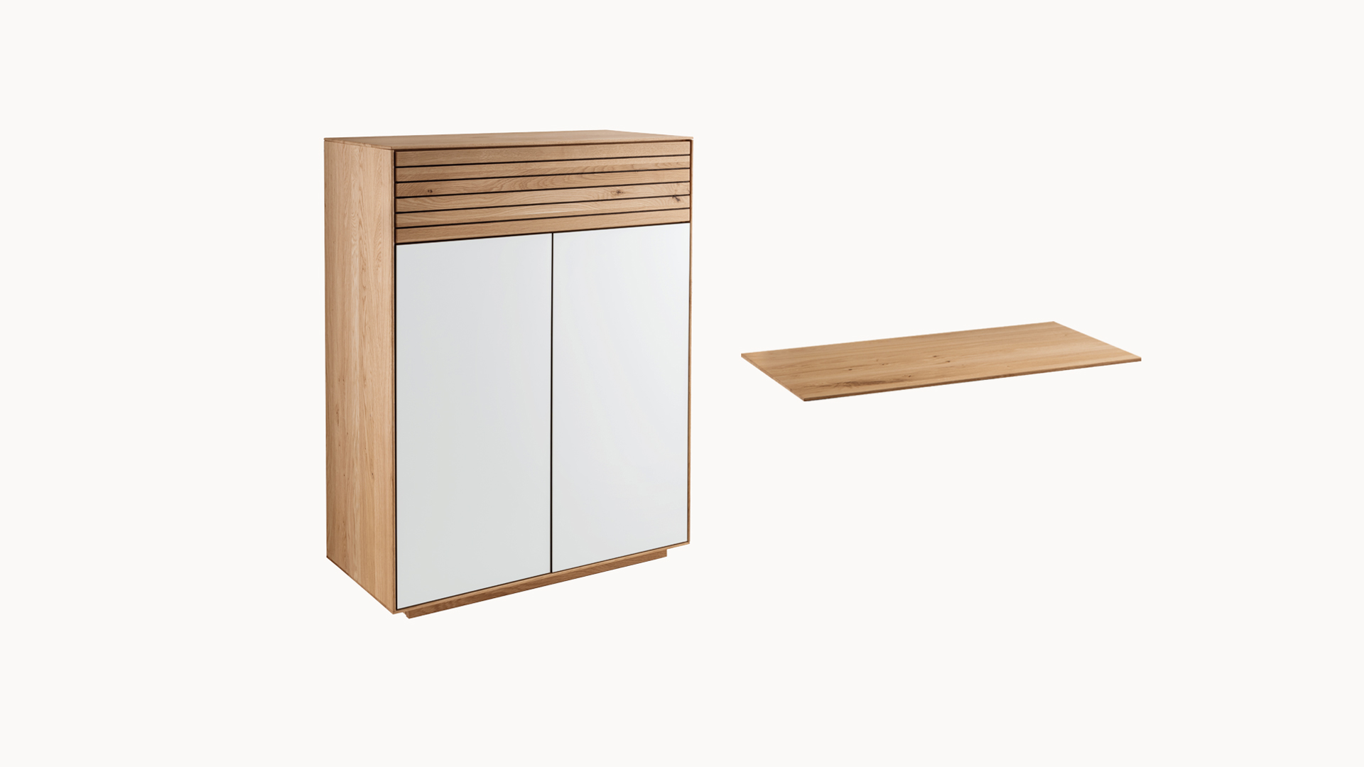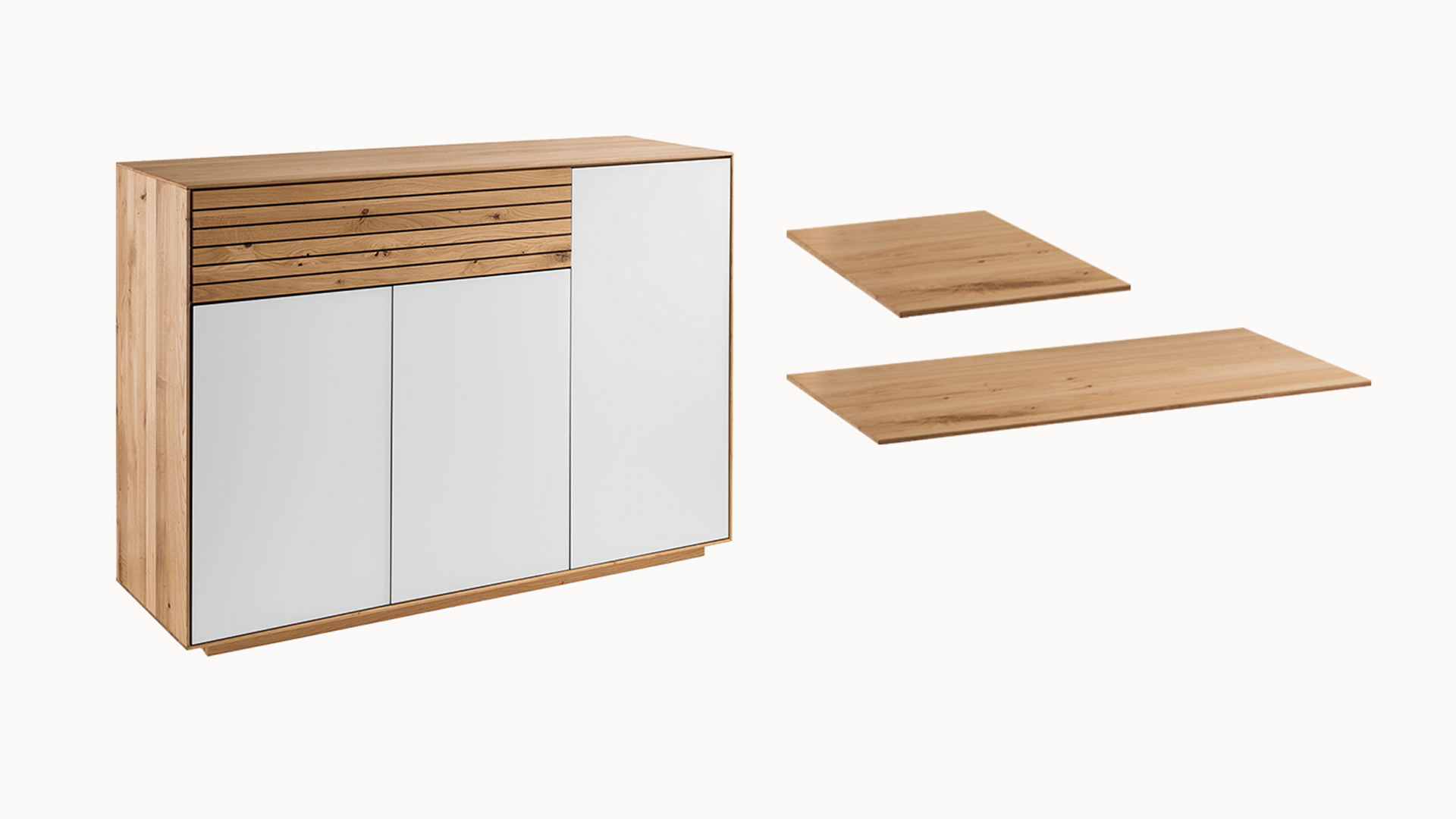Mit zusätzlichen Fachböden aus massiver Wildeiche gestalten Sie den Innenraum Ihrer "Fiella"-Möbel ganz nach Ihren Vorstellungen. Die Böden eignen sich ideal, um Dielenschrank, Garderobenbank, Kommode oder Schuhschrank zu erweitern und übersichtlich zu strukturieren. Im Sideboard lassen sich das schmale oder breite Schrankfach flexibel erweitern. So passen Sie Ihre "Fiella"-Möbel perfekt an Ihren Alltag an und nutzen den vorhandenen Stauraum optimal.